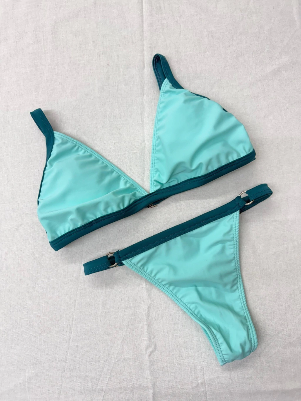 Bikini bicolor triangulo con tiras regulable y bombacha colaless regulable