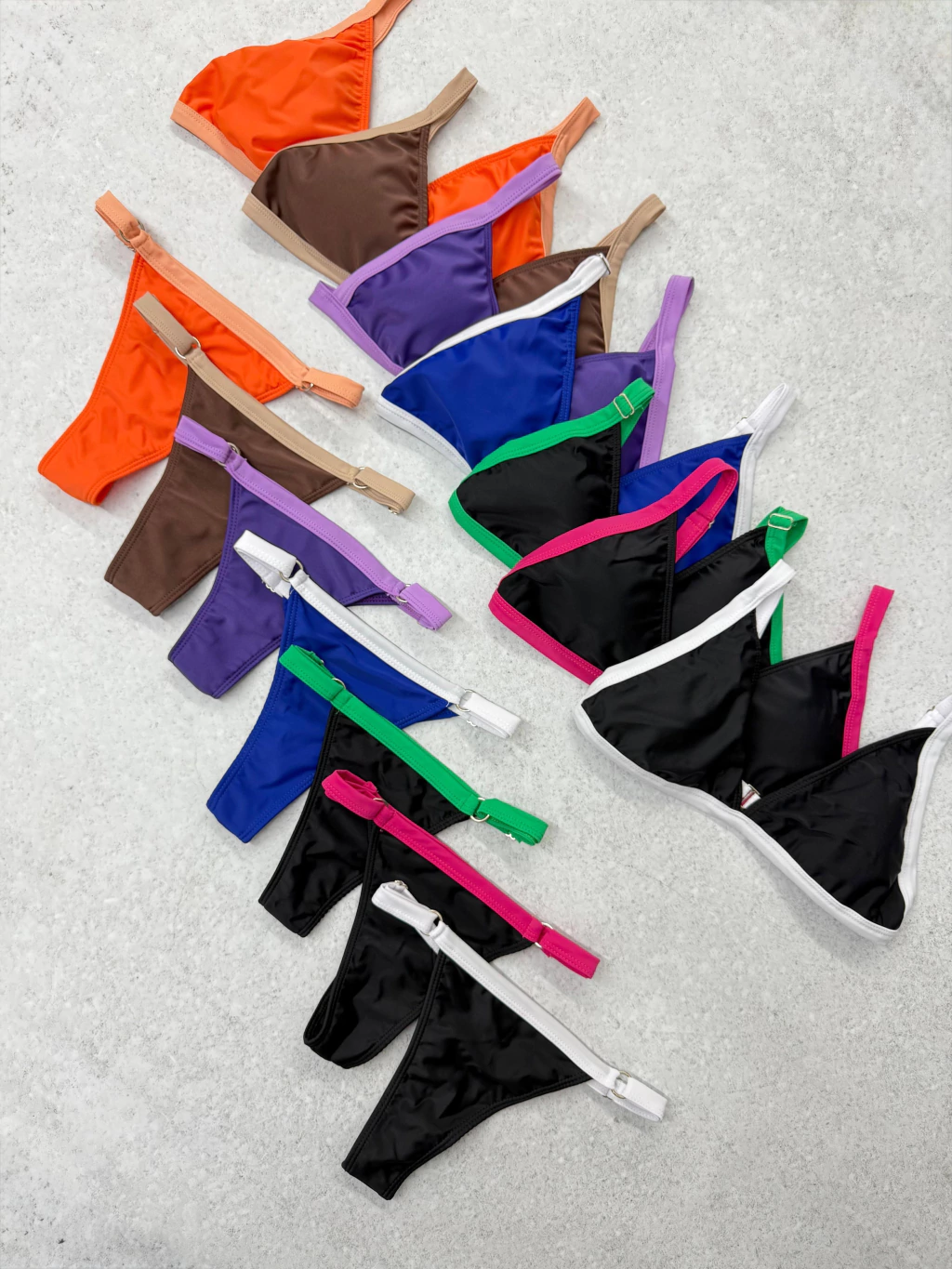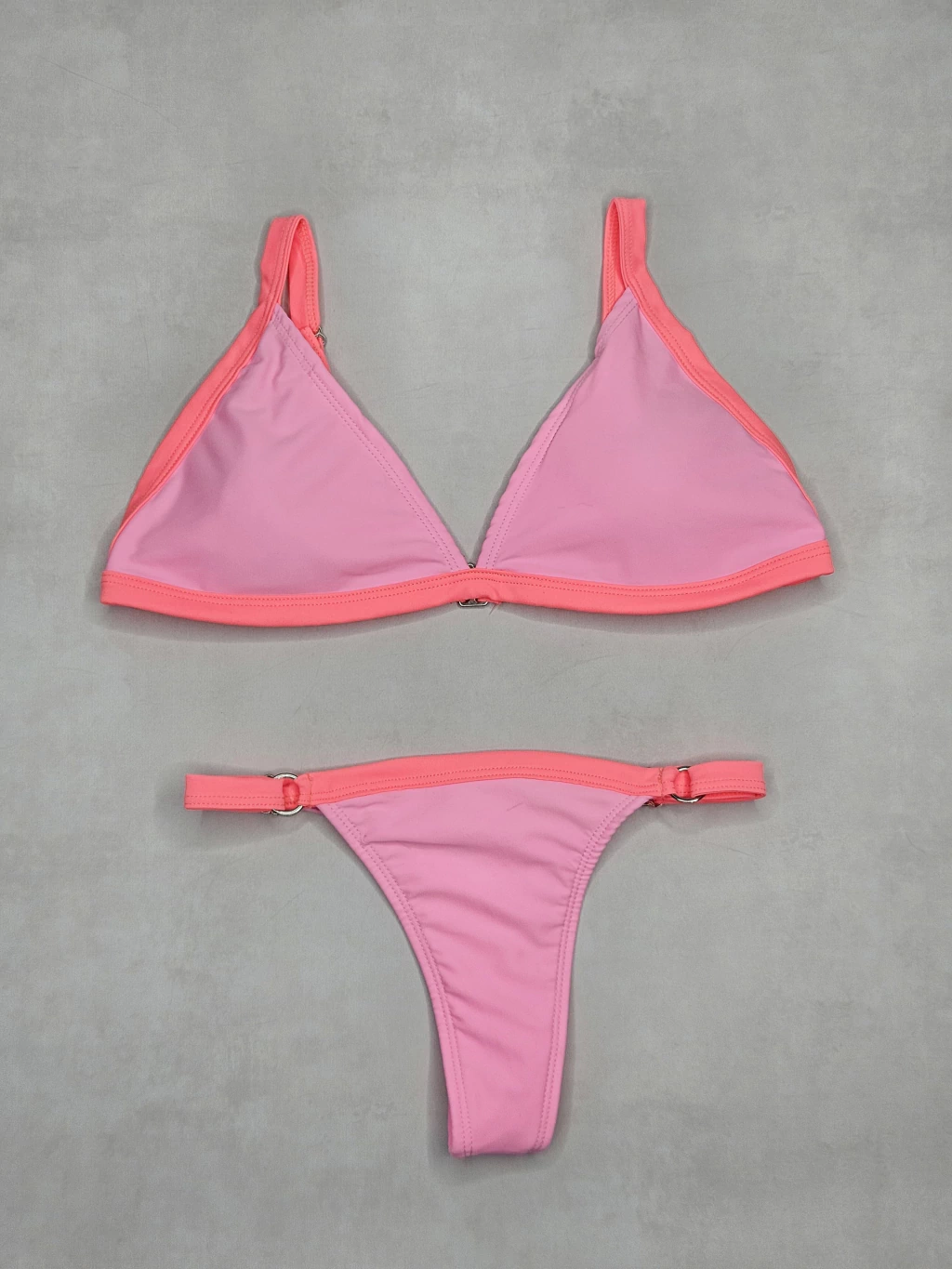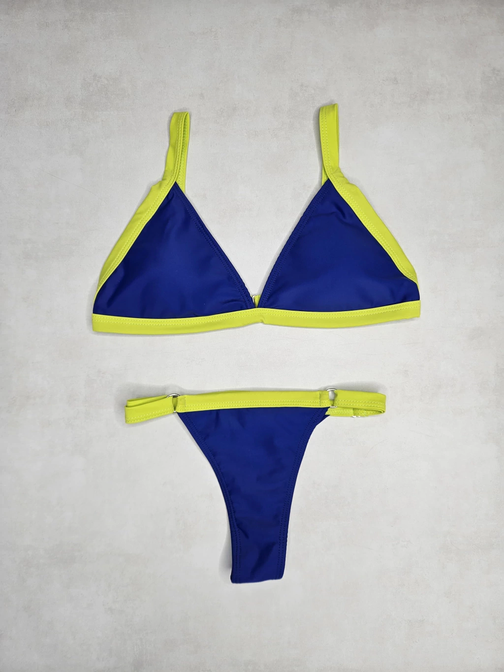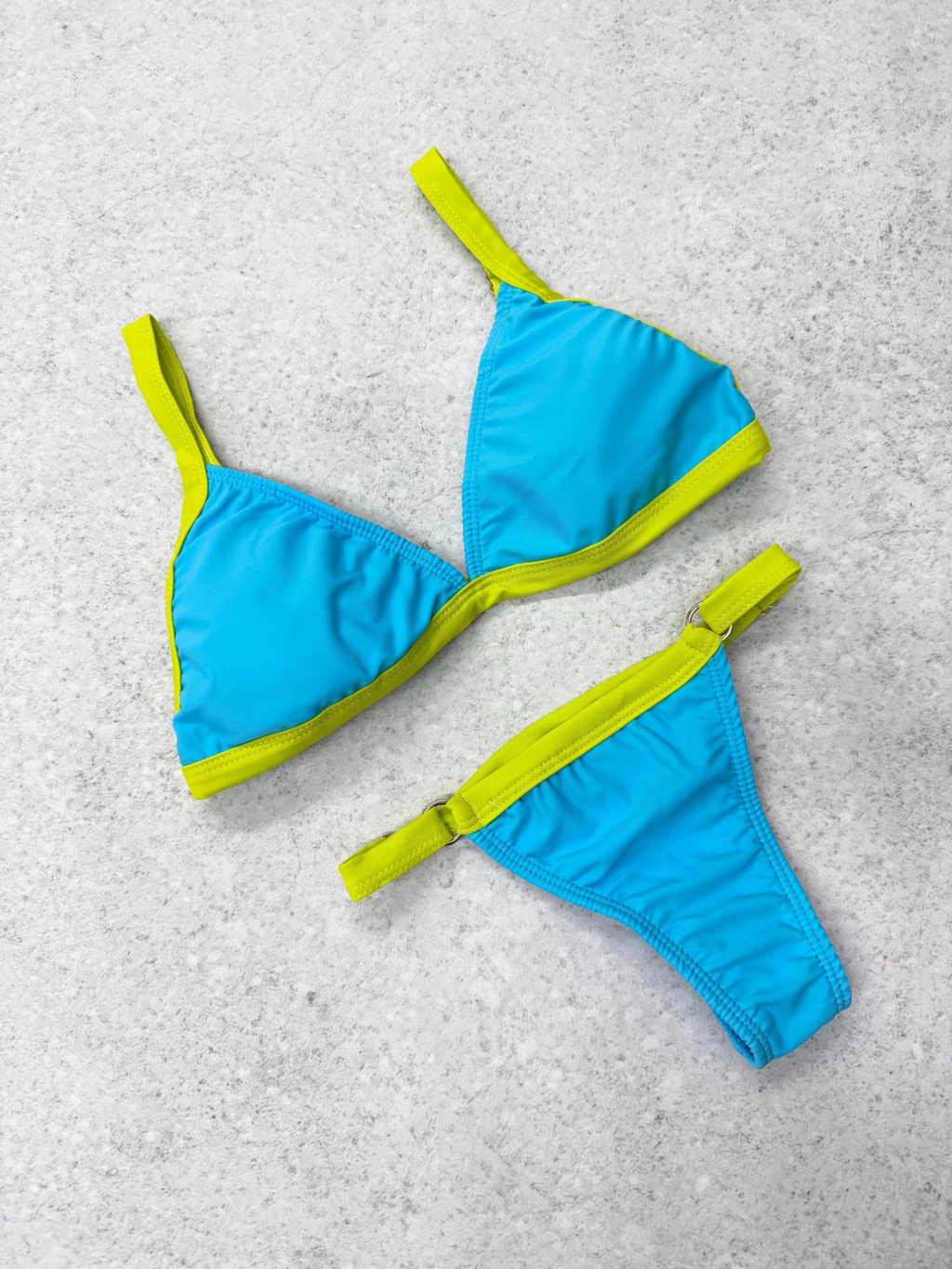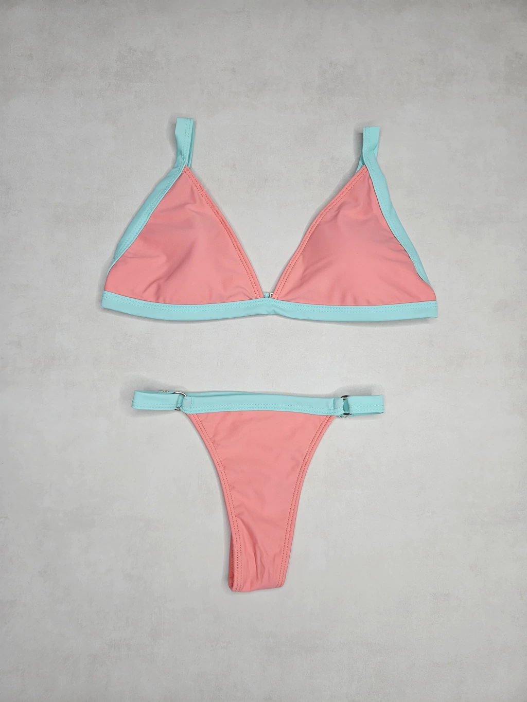 Bikini bicolor triangulo con tiras regulable y bombacha colaless regulable