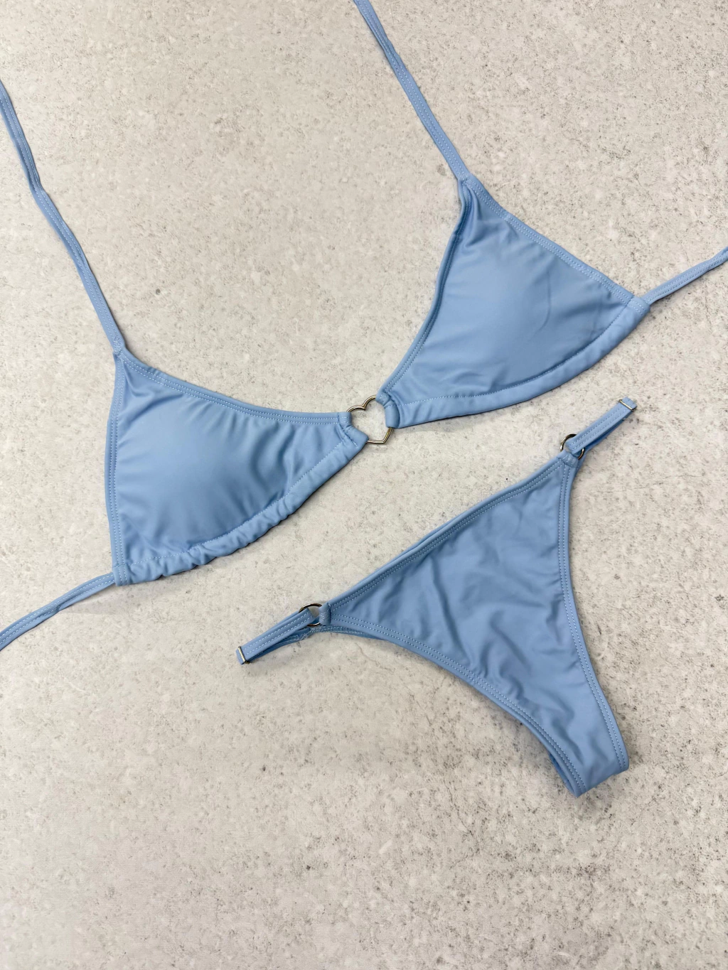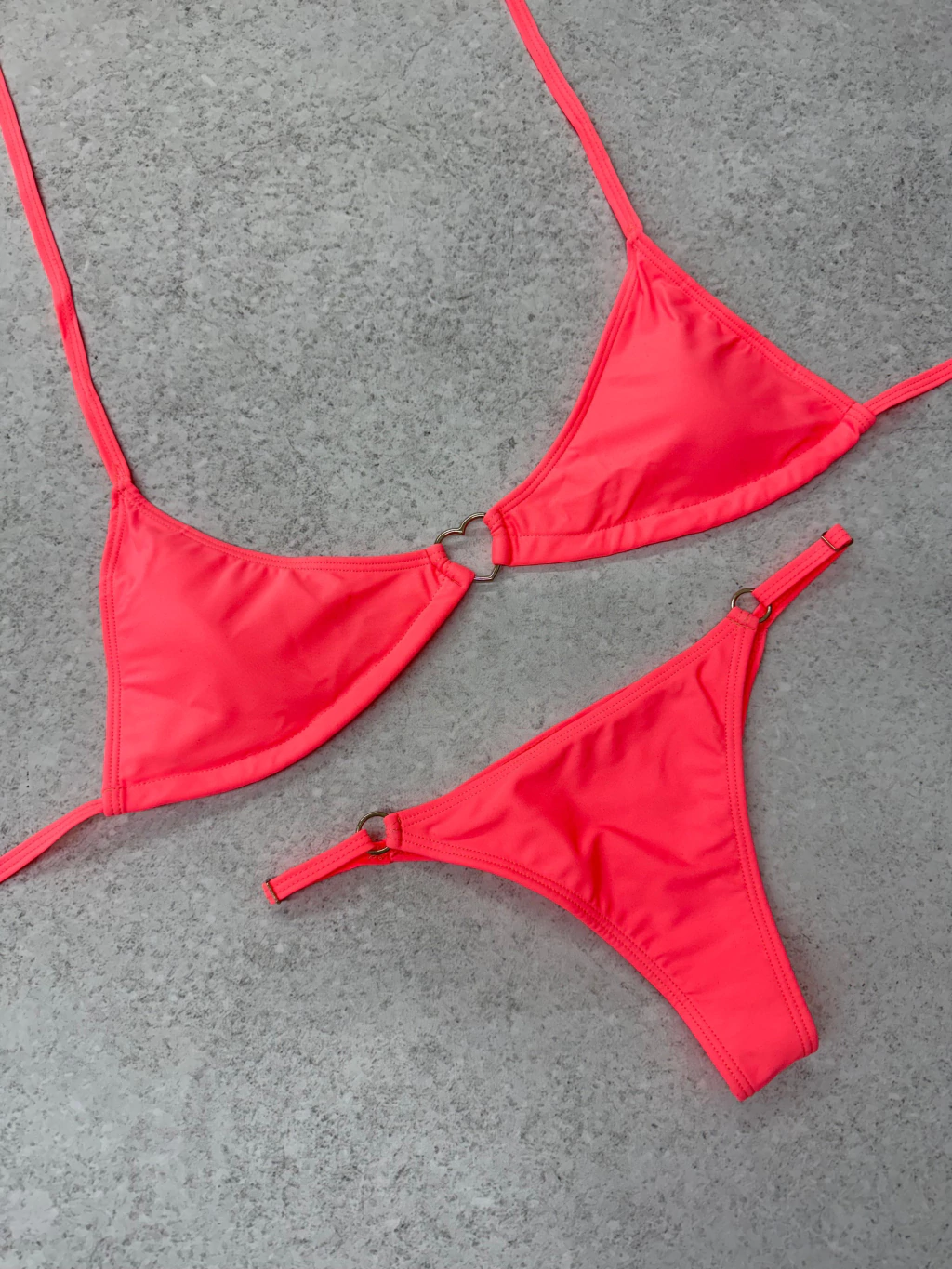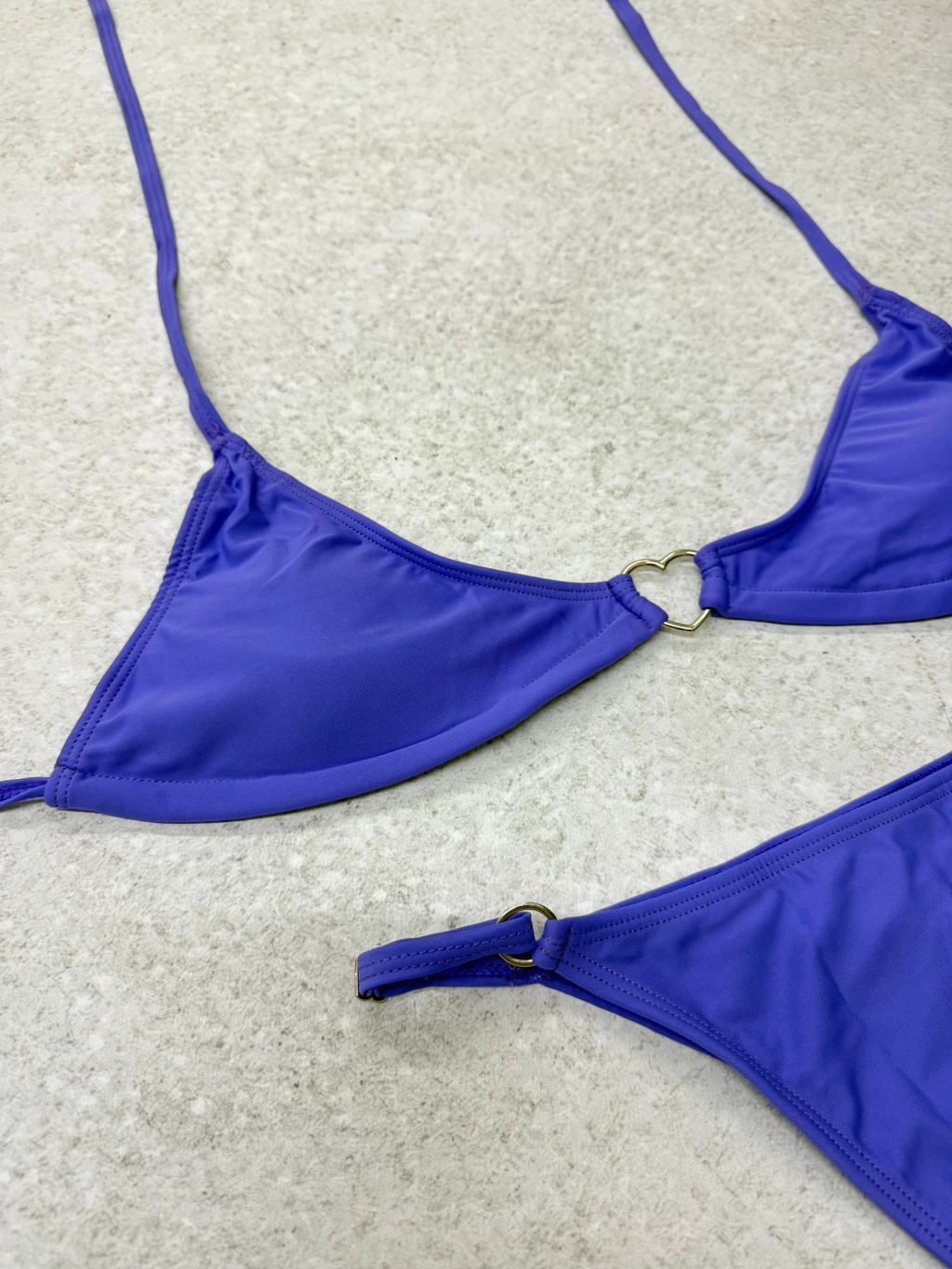 Bikini triangulo con accesorio corazón en medio y bombacha colaless con aros